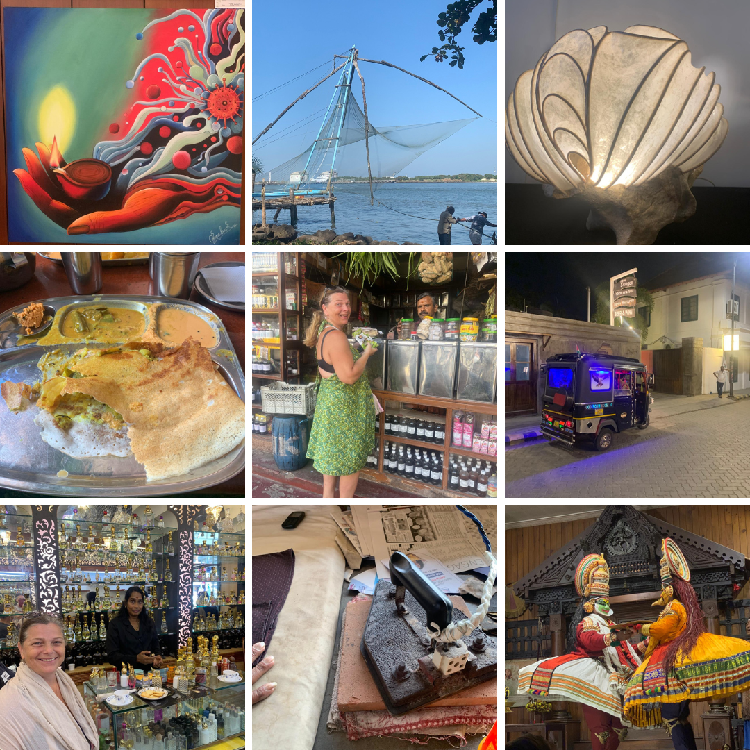 En we zijn eindelijk gearriveerd in India en dan in Koch. Het is een grote stad in Kerala, maar het is vooral Fort Kochi (de oude stad) die zo ontzettend mooi is en interessant is. Wij zijn eigenlijk een dag eerder aangekomen op de bestemming dan de andere reizigers die deze Gezondheidsreis hebben geboekt bij Natasha, de eigenaresse van Bezielen.