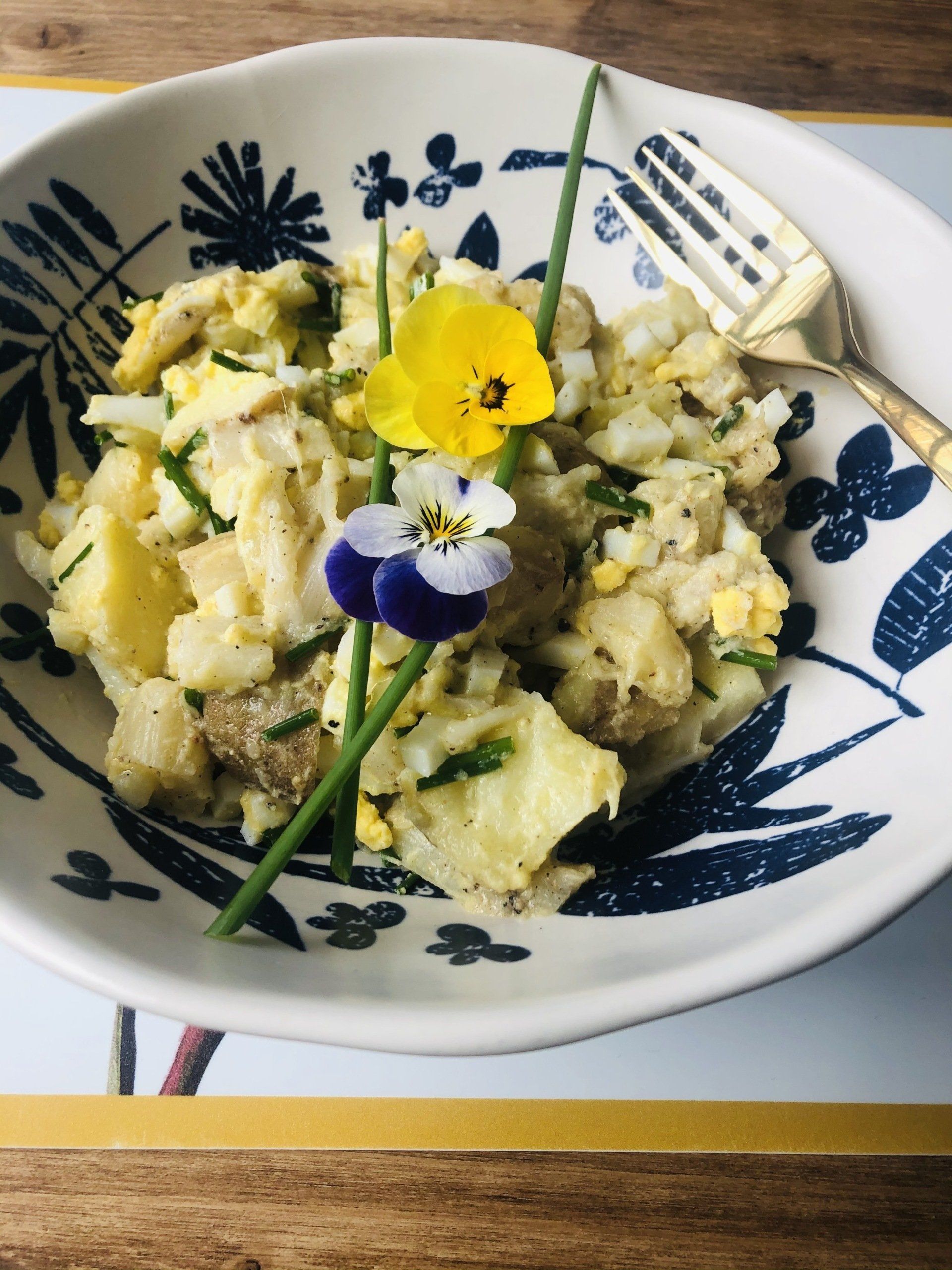 Ook deze heerlijk zacht maar stevig gekruide salade smaakt alweer verrukkelijk! Aardappels samen met de eiren kunnen voor zwaar aanvoelen maar juist de nootmuskaat, bieslook, zwarte peper en bieslook maakt het niet alleen heel smaakvol maar ook makkelijker om te verteren. Niet te zwaar voor Kapha en ook heerlijk verkoelend voor Pitta en zelfs Vata kan hier zonder problemen van genieten.