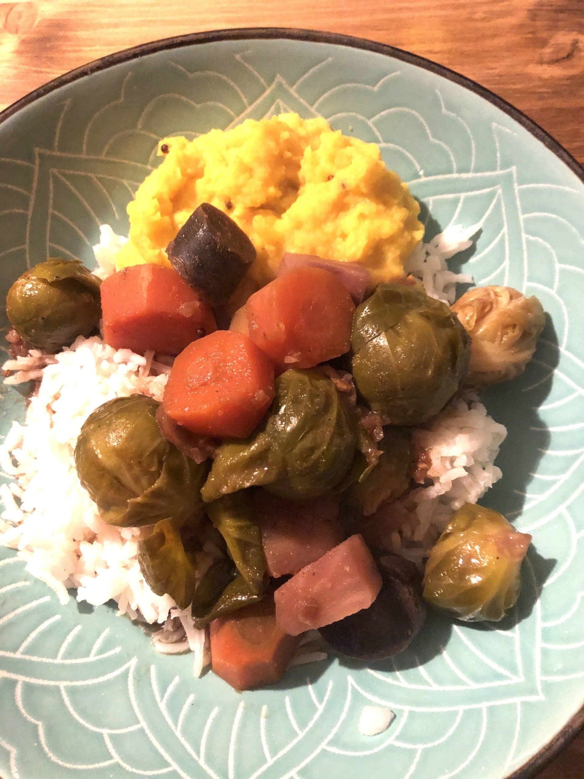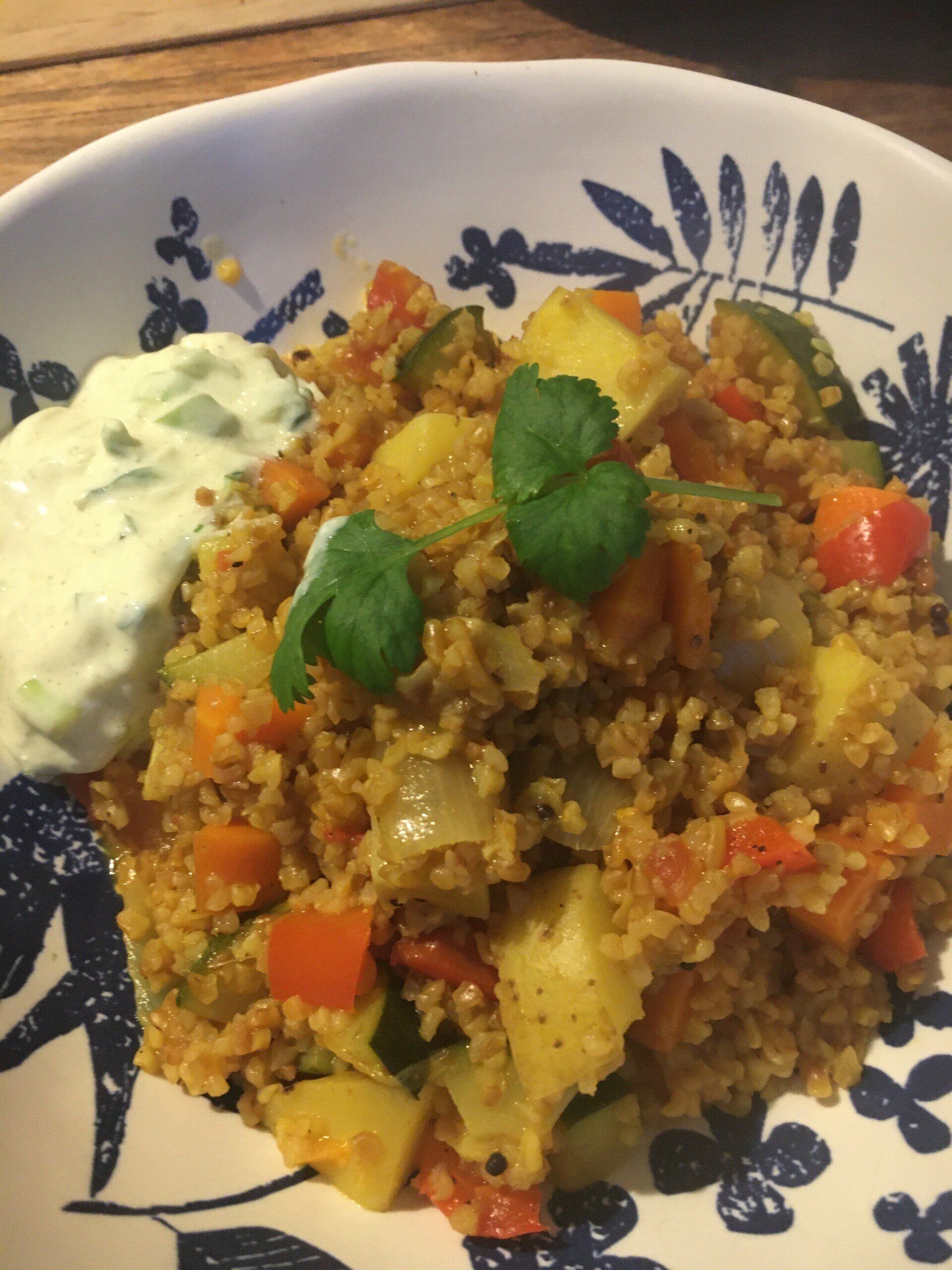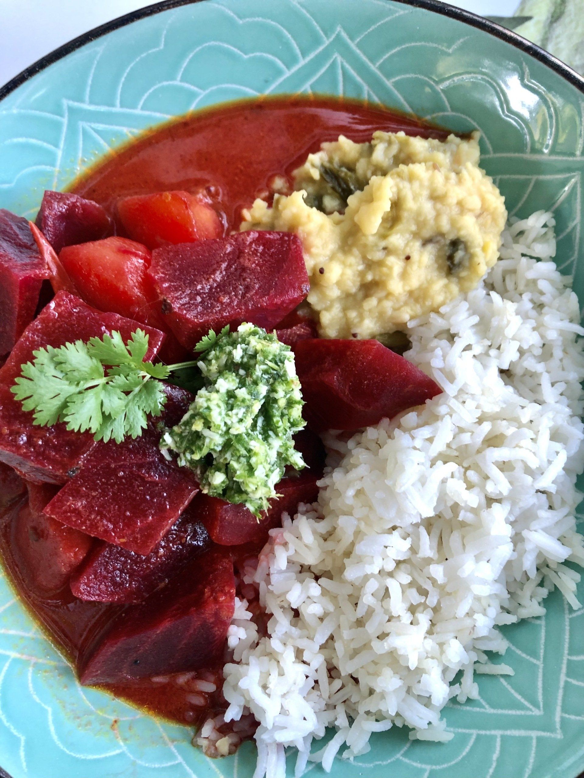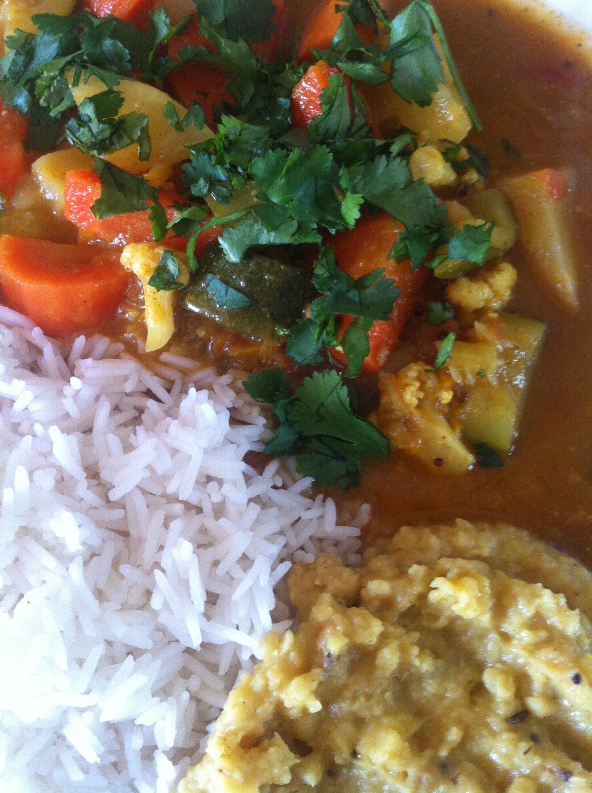 Dalším příkladem je zeleninová polévka s obilím a fazolemi. Zeleninové kari s rýží a dahlem je rozsáhlejší a také lahodná verze vyváženého jídla.