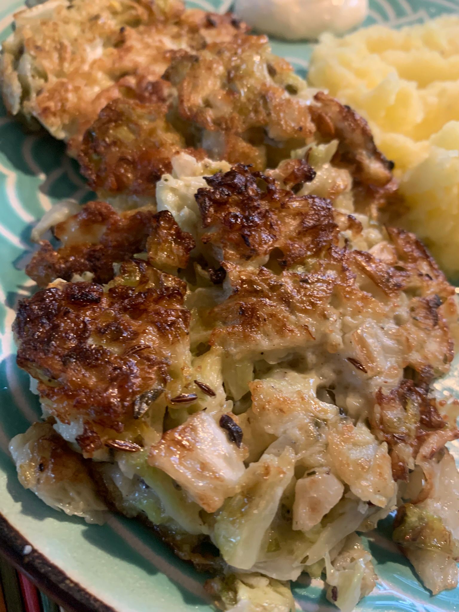 Verhit wat kokosvet in een koekenpan. Vorm van het mengsel kleine pasteitjes en bak ze aan beide kanten goudbruin. Serveer met geprakte aardappelen met ghee en mierikswortel, of gebruik ze als burgertjes op een broodje.