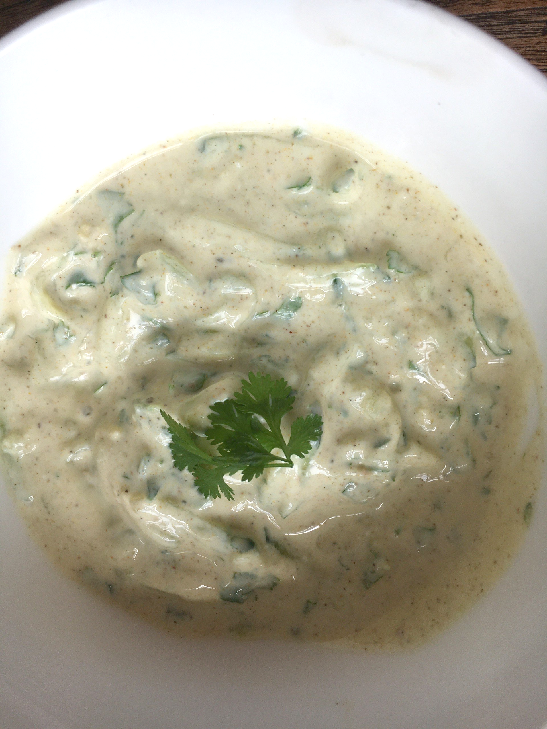 Doe alle ingrediënten in een kom en meng goed. Dit gerecht gaat goed samen met de gekruide aardappelpasteitjes met wortel of dahl of Indiase curry. Ook heerlijk als een dipsausje met pappadums of rauwe groenten zoalals stukjes wortel, paprika, bleekselderij...