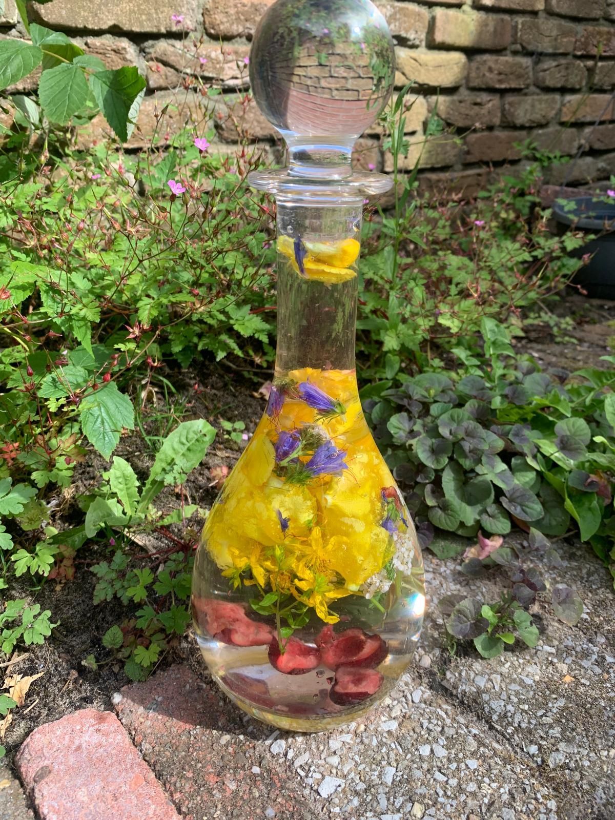 De zomer is een perfecte tijd om te genieten van de helende krachten van bloemen en kruiden in een verfrissende zonnedrank. Hier is een eenvoudig recept voor een zomerse kruidenzonnedrank, met gebruik van slangekruid, teunisbloem, koningskaars, boerenwormkruid, sint-janskruid en vrouwenmantel.